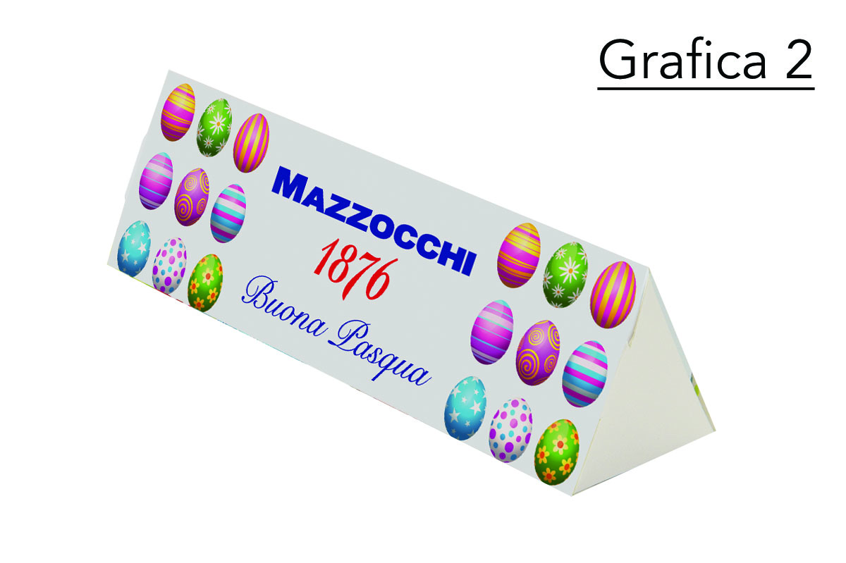 Simpatica scatola triangolare realizzata in un cartoncino 350 gr di alta qualità, contenente 5 ovetti di cioccolato al latte con cremoso ripieno al latte e cereali croccanti con incarto assortito.